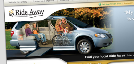 PROJECT: RideAway is the largest provider of accessible vehicles, vehicle modifications, and adaptive equipment for the handicap community. The new design worked to position RideAway as the leader in the market of modified vehicle services and rentals.