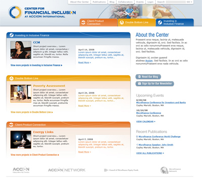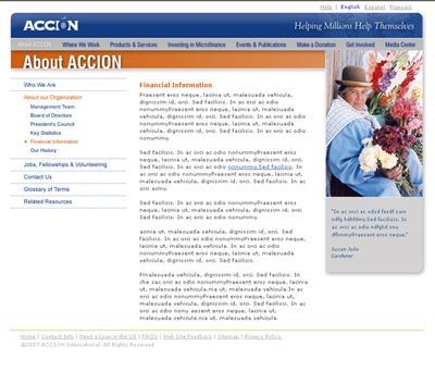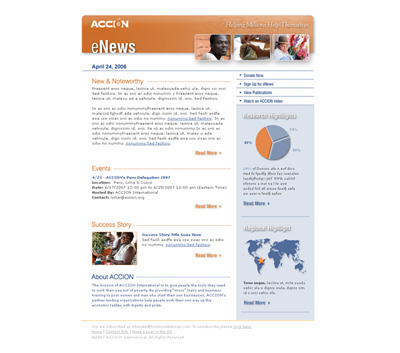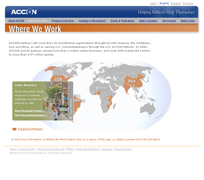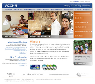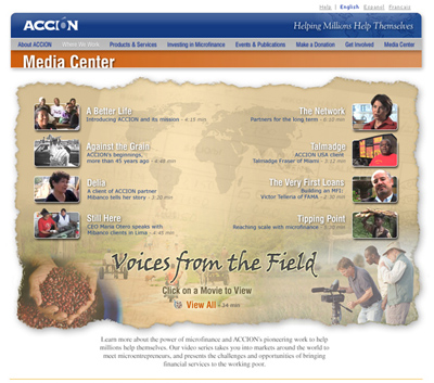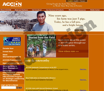 PROJECT: Accion is a microfinance organization which helps banks in third world countries supply loans to entrepreneurs in need for financial support to bring themselves out of poverty. This design works to broaden ACCION's global reach to investment banks and promotes the success of the families involved.