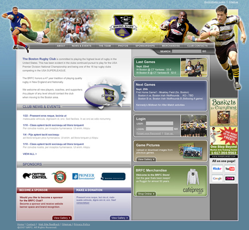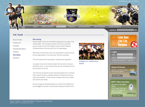 PROJECT: Boston Rugby Football Club is a rugby team which needed a more energizing website to promote the team and gain membership.