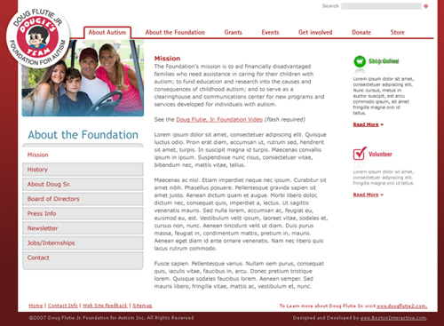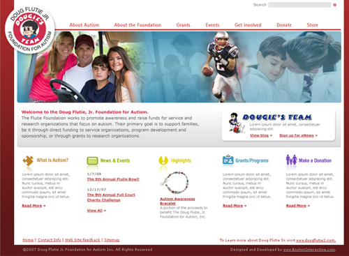 PROJECT: The Doug Flutie Foundation for Autism works to promote awareness and award families' with financial relief who are affected by autism. This design works to promote donations and build a larger community for the families affected by autism.